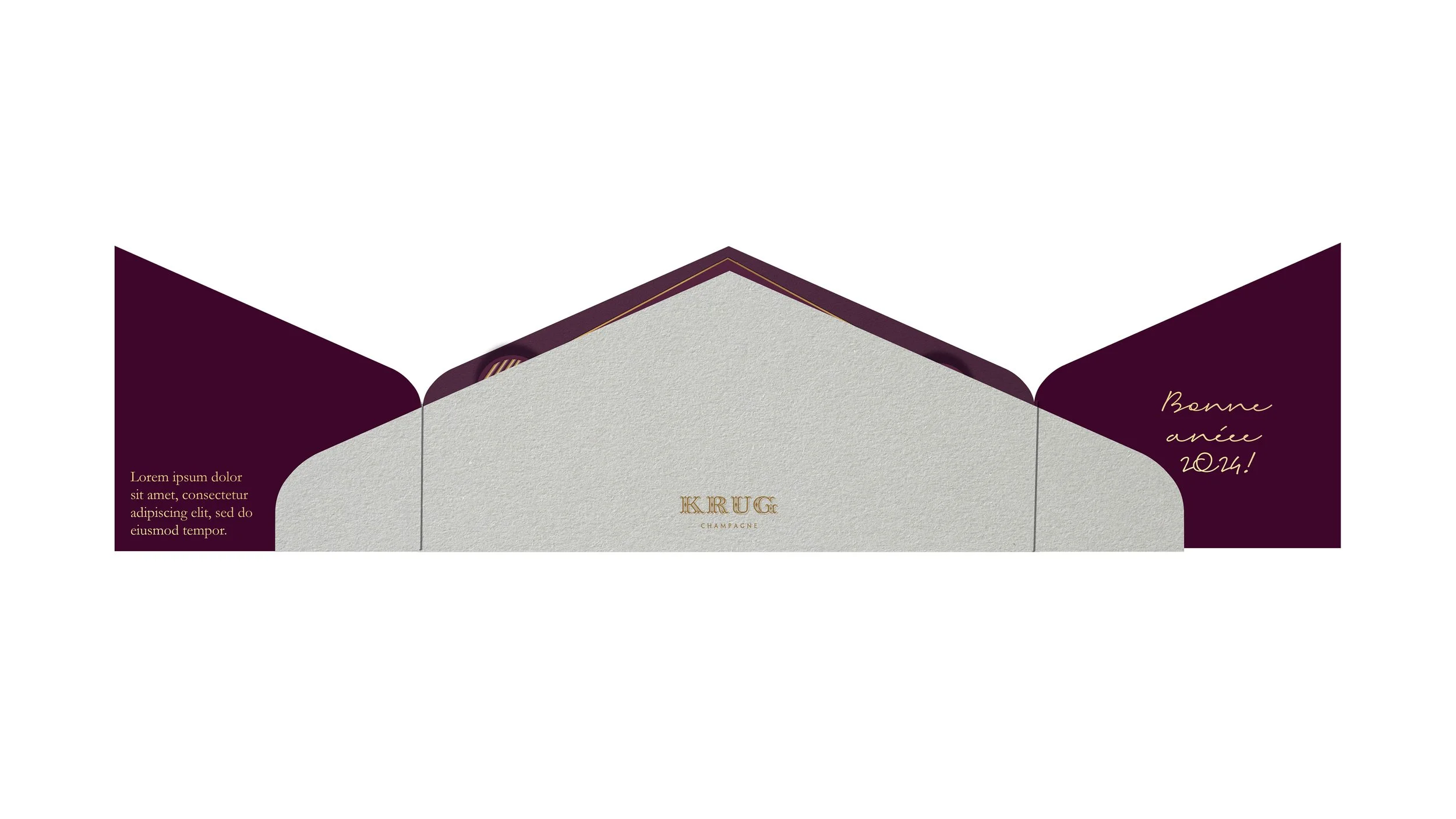 Le projet s’est concrétisé par la création d’une carte de vœux papier, afin de souhaiter les vœux de la Maison tout en accompagnant l’inauguration du nouveau cellier Joseph 2.0. Pensée en lien direct avec l’architecture du bâtiment, cette carte s’inscrit dans la continuité de la Maison Krug.