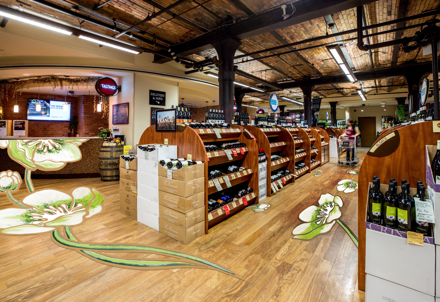 Dans le cadre d’un projet de merchandising déployé au sein du point de vente Astor Wines & Spirits, des décors ont été développés pour valoriser l’univers de Perrier-Jouët sur le marché américain.
