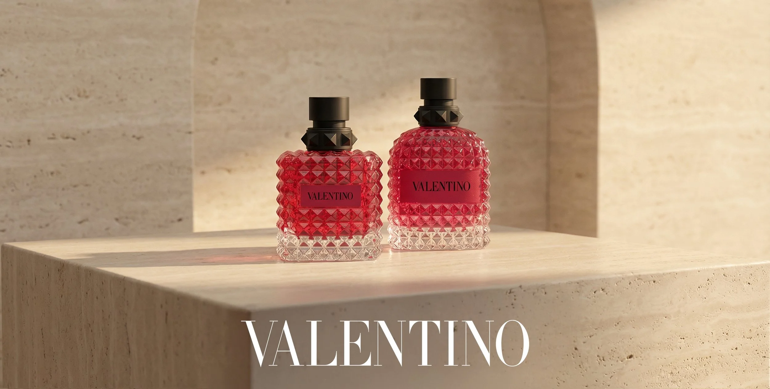 Valentino Parfums a souhaité retravailler deux packshots de la ligne Born in Roma : Born in Roma Donna et Born in Roma Uomo.