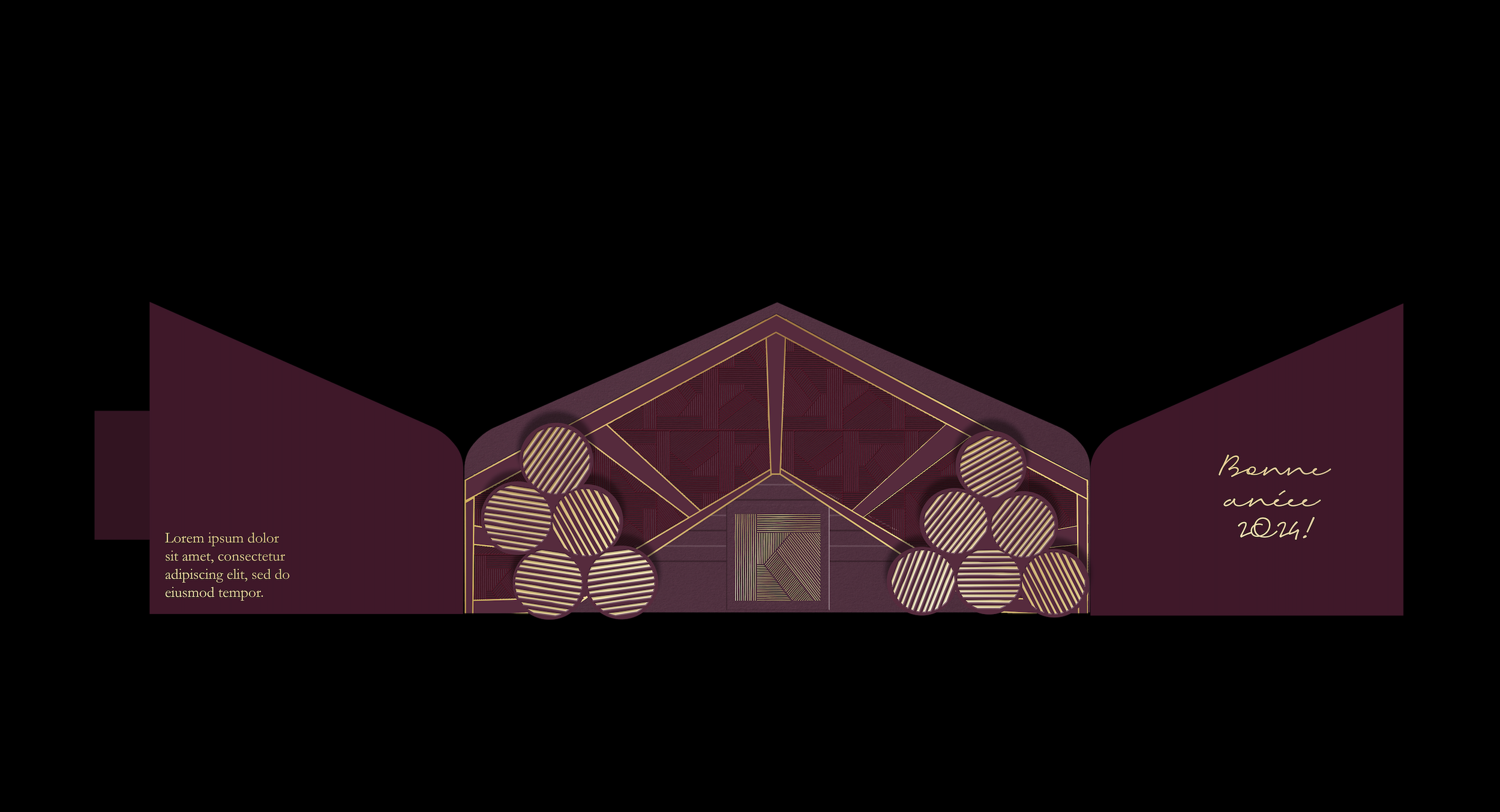 Création d'une carte de voeux papier pour la nouvelle année, basé sur l'architecture du nouveau cellier Joseph 2.0 élaboré par la maison Krug et qui devrait être inauguré courant 2024. Ce cellier a pour ambition de réorganiser et de concentrer l’activité oenologique au sein d’un même bâtiment moderne et fonctionnel.